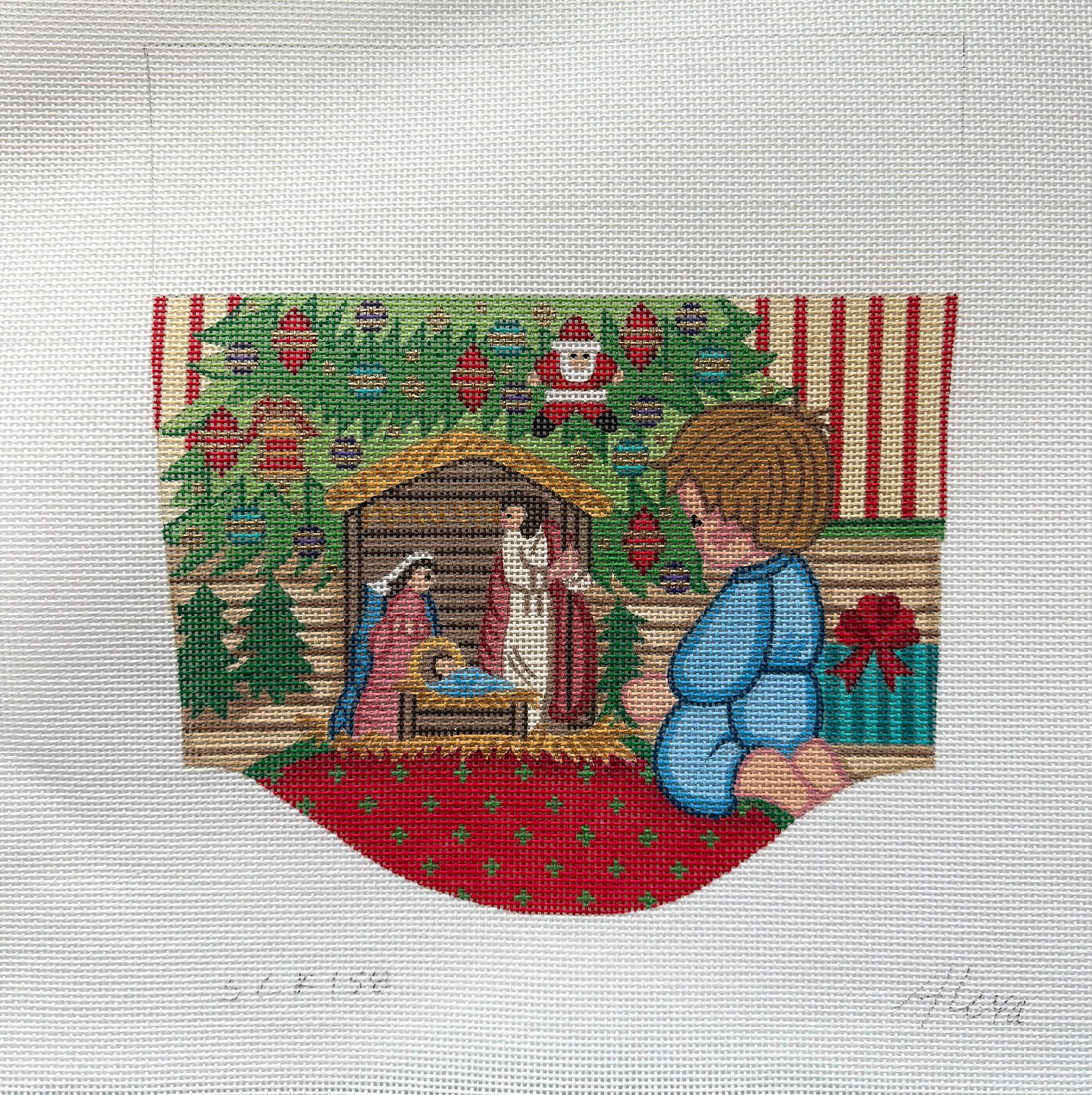 Boy with nativity (stocking cuff)