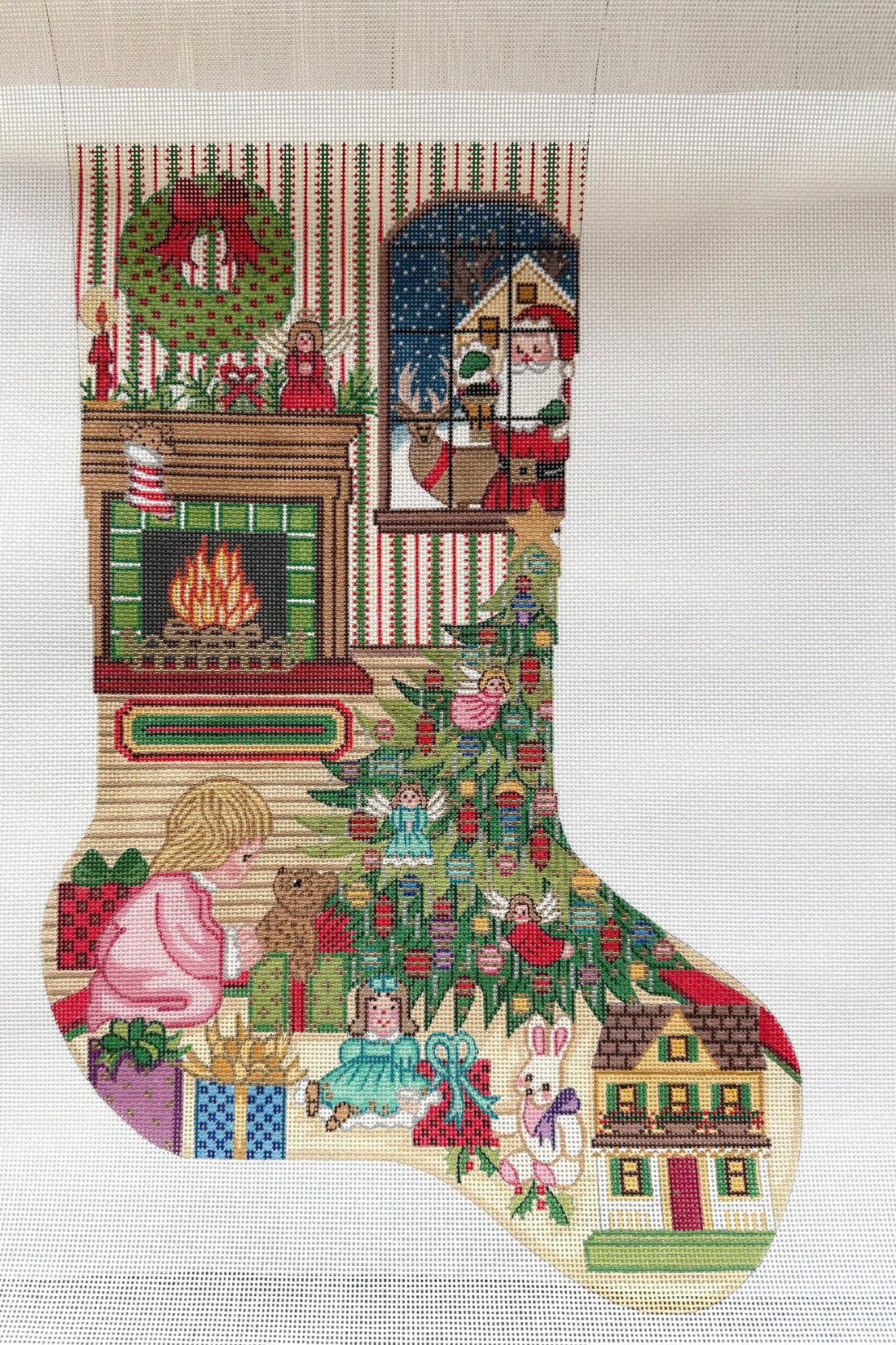 Girl watching Santa (stocking cuff)