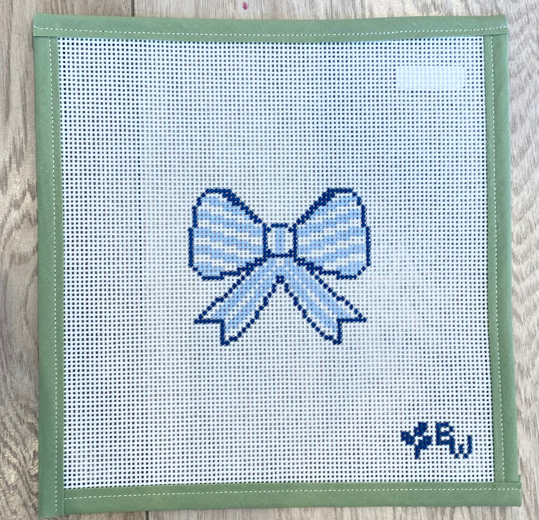 blue and white bow