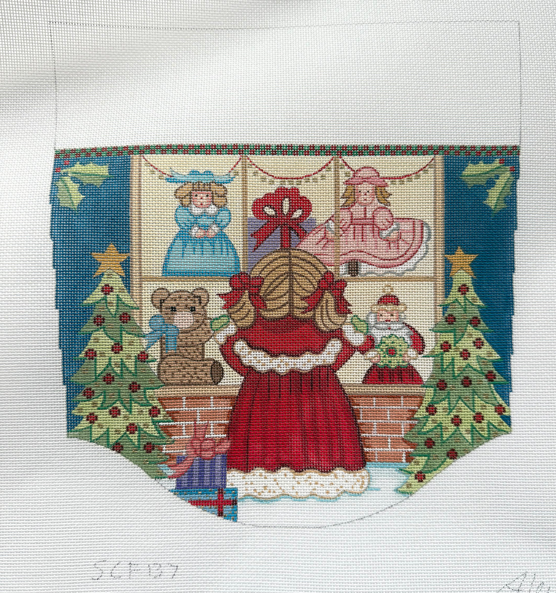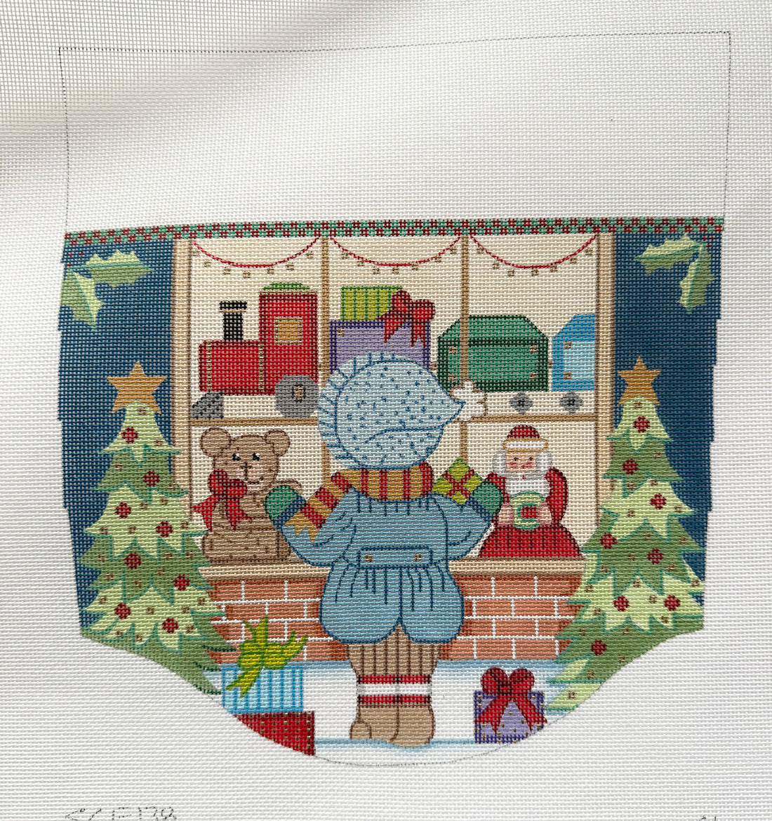 Girl looking at toys (stocking cuff)