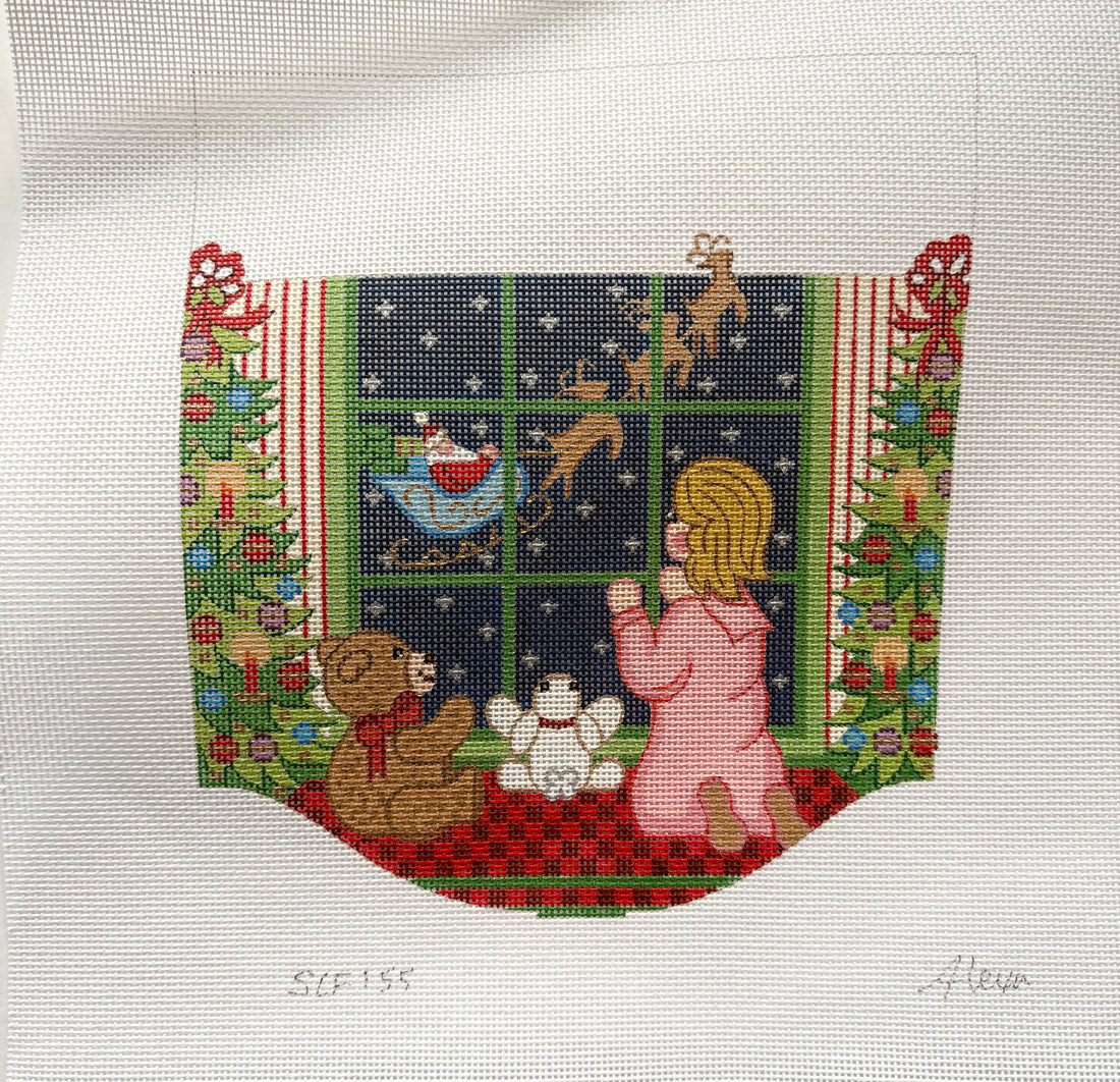 Girl watching Santa (stocking cuff)