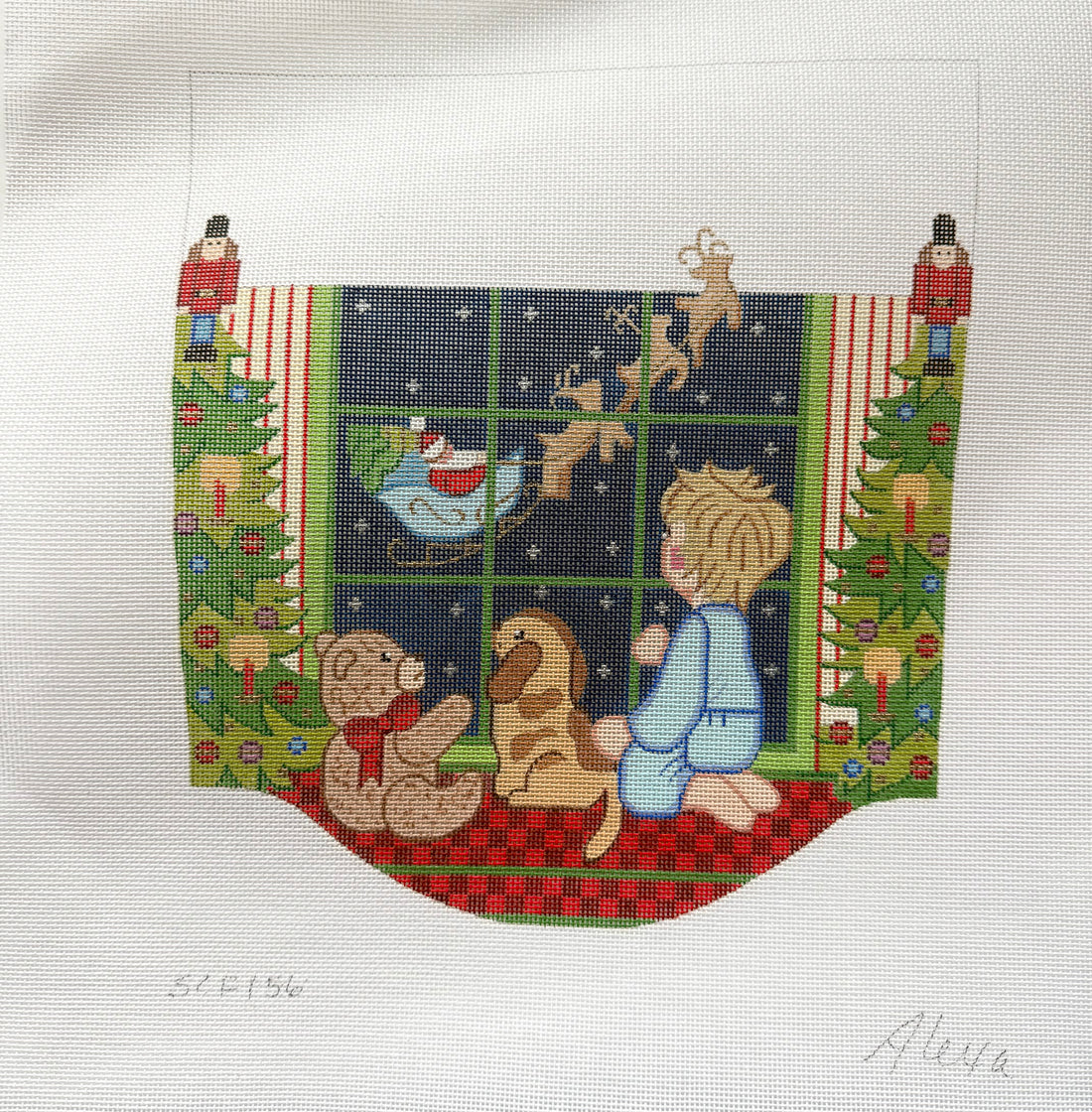 Boy watching Santa (stocking cuff)