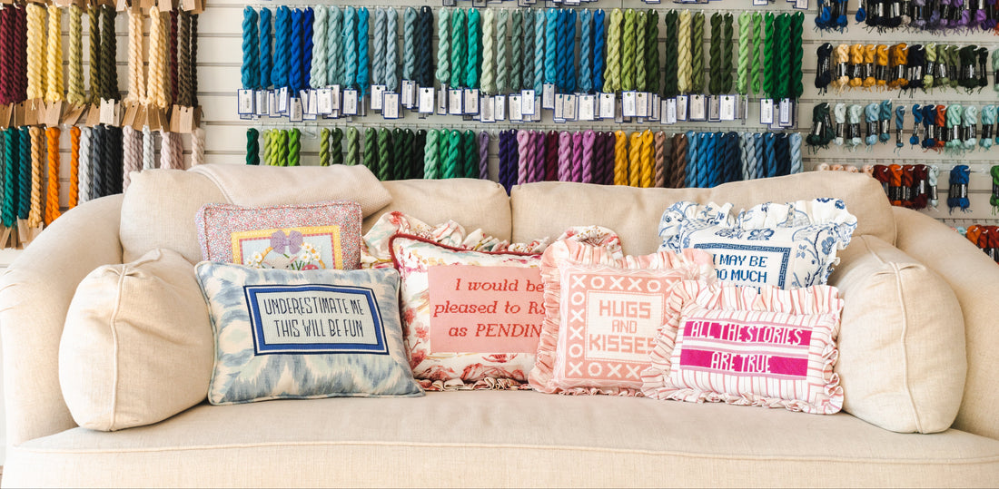 Tell us what you envision, and we will make it happen. Reach out to us if you have specific ideas in mind, or fill out our pillow form and send it in with your canvas. We look forward to bringing your needlepoint creations to life! Please note we ask for at least 1 extra row around your pillow for our finishers.