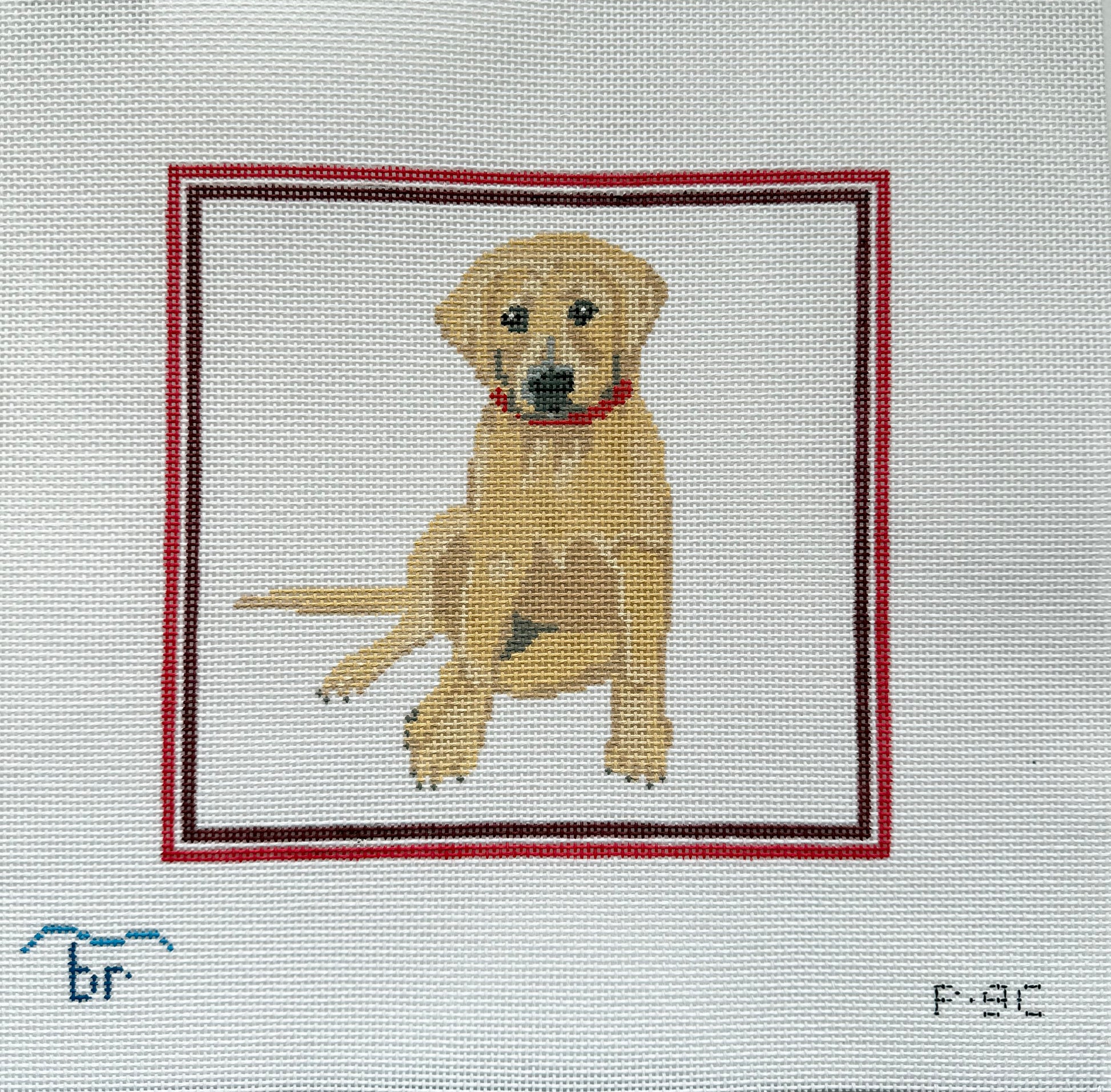 Yellow Lab, red frame
